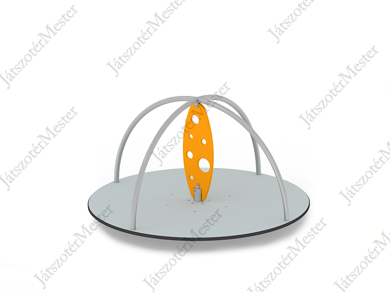 A SAPrimo SWING körforgó tetszetős külalakú, kitűnő minőségű rozsdamentes acél konstrukció. A fémszínű megjelenés az eszköz közepén alkalmazott HDPE elem színével egészül ki. Ennél a tipusnál a padlólemez csúszásmentes HPL lemezből lett kialakítva. A gyerekek a hajlított rudakba kapaszkodva el tudják forgatni az eszközt a középső tengely körül. A körforgó célja az állóképesség javítása, az egyensúlyérzék fejlesztése. Az egy méter alatti esésmagassága miatt a gondozott fűves talaj is elegendő alá.